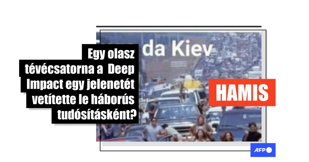 Már több ezer ember osztott meg egy magyar Facebook-bejegyzést 2022. március 4-e óta, de a bejegyzésnek több helyen is előfordul magyarul a közösségi médiában (például itt és itt). A bejegyzésben két kép szerepel: a felsőn azt olvasni, hogy "menekülés Kijevből" és a TGCOM24 logóját látni a jobb felső sarokban, az alsó képen pedig a "Deep Impact film" szöveg olvasható.