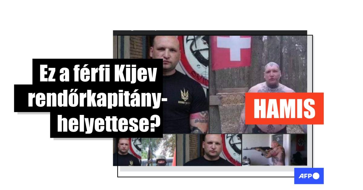"Ez az állat itt Artem Bonov. Ukrajna Fővárosának, a majd 3 milliós lakosságú Kijevnek a rendőrkapitány helyettese" – írja egy magyar Facebook-bejegyzés, amit már több mint 5 ezer ember osztott meg 2022. március 22-e óta. A bejegyzésben több képet látni egy horogkeresztes és más náci tetoválásokkal borított férfiról.