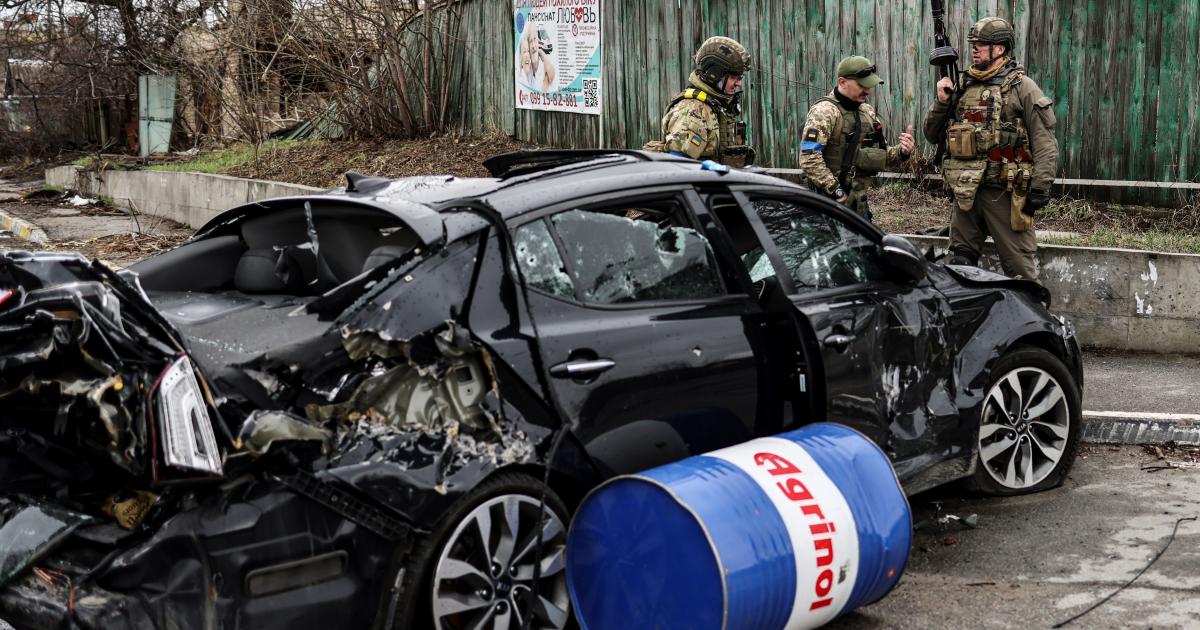 Ez a sérült autókat ábrázoló kép nem bizonyítja, hogy a Bucsáról szóló tudósítások megrendezettek lennének