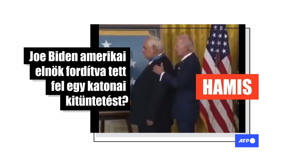 Magyar Facebook-felhasználók már több mint kétezer alkalommal osztották meg (például itt és itt) 2022. július 7-e óta azt a homályos 19 másodperces videofelvételt, amin azt látni, ahogyan Joe Biden amerikai elnök kitüntet egy veteránt egy ünnepség keretében 2022. július 5-én. A bejegyzések azt állítják, hogy a videón azt látni, hogy Biden "visszafelé" tette fel a kitüntetést a veteránra.