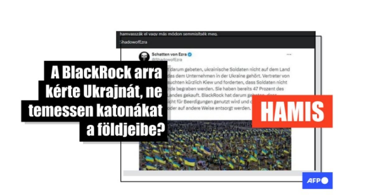2024 augusztusában számos magyar nyelvű Facebook-bejegyzés jelent meg, például itt és itt, amik azt állították, hogy a BlackRock képviselői nemrég Ukrajna fővárosában, Kijevben jártak, és azt kérték, hogy a katonák maradványait ne temessék olyan földbe, amit a cég birtokol. A posztok azt is állítják, hogy a BlackRock “megvásárolta az ukrán földek 47 százalékát”.