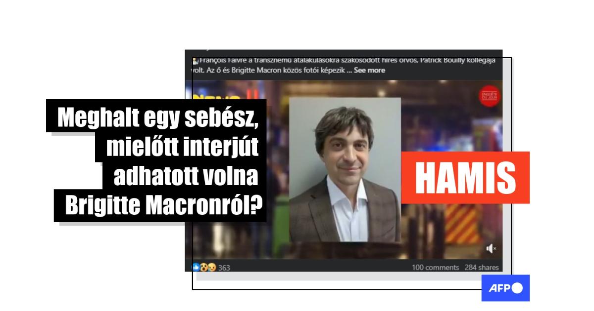 “Holtan találták Párizsban a Brigitte Macron transznemű átalakulását bejelentő sebész” – olvasható egy magyar Facebook-bejegyzés leírásában. A poszthoz csatolt videót a 2025. július 5-i közzététele óta már több mint 17 ezren látták. A poszt azt állítja, hogy az “58 éves François Faivre kiesett lakása ablakából”, és azt, hogy hogy a halála összefüggött azzal, hogy ismerte a sebészt, aki állítólag nemátalakító műtétet végzett Brigitte Macronon, és egy “leleplező interjúra” készült ezzel kapcsolatban. A magyar Facebook-bejegyzés az állítás forrásának az “Enquete du jour”-t nevezi meg.