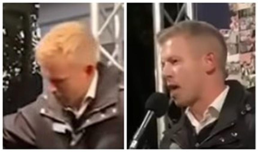 Ezt követően a módosított videó azt mutatja, hogy Magyar szétveri Orbán kartonfiguráját, míg az eredeti verzióban egy sárga mellényt viselő szervező teszi félre a figurát.