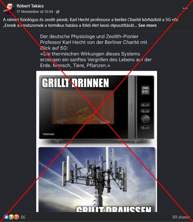 Az 5G egy ötödik generációs mobilkommunikációs szabvány, aminek a bevezetése 2019-ben kezdődött el. Egy 2025 novemberében a közösségi médiában elterjedt állítás szerint az 5G úgy „grillezi” meg az életet a Földön, ahogy a mikrohullámú sütő átmelegíti az ételt. A szakértők azonban kijelentették, hogy ez a hasonlat nem helytálló, és az 5G biztonságos, ha betartják a törvény által megszabott biztonsági előírásokat. A posztok egy orvos kijelentéseit is idézik az 5G-vel kapcsolatban, de az abban foglaltak szintén tévesek.