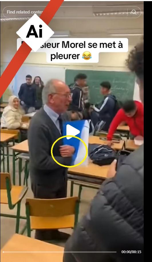 A 17 másodperces felvételen egy idős férfi látható, amint egy tanteremben sír, miközben a körülötte lévő gyerekek figyelik – néhányan nevetnek, és azt mondják: „sírdogál”. A videón egy francia felirat is olvasható: „Morel úr sírni kezd”.