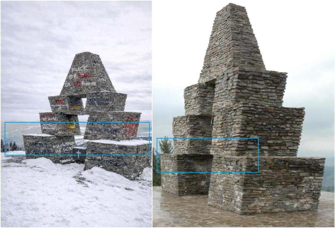 Ezeket a képeket a "megrongált" Vereckei-hágói emlékműről számítógéppel készítették