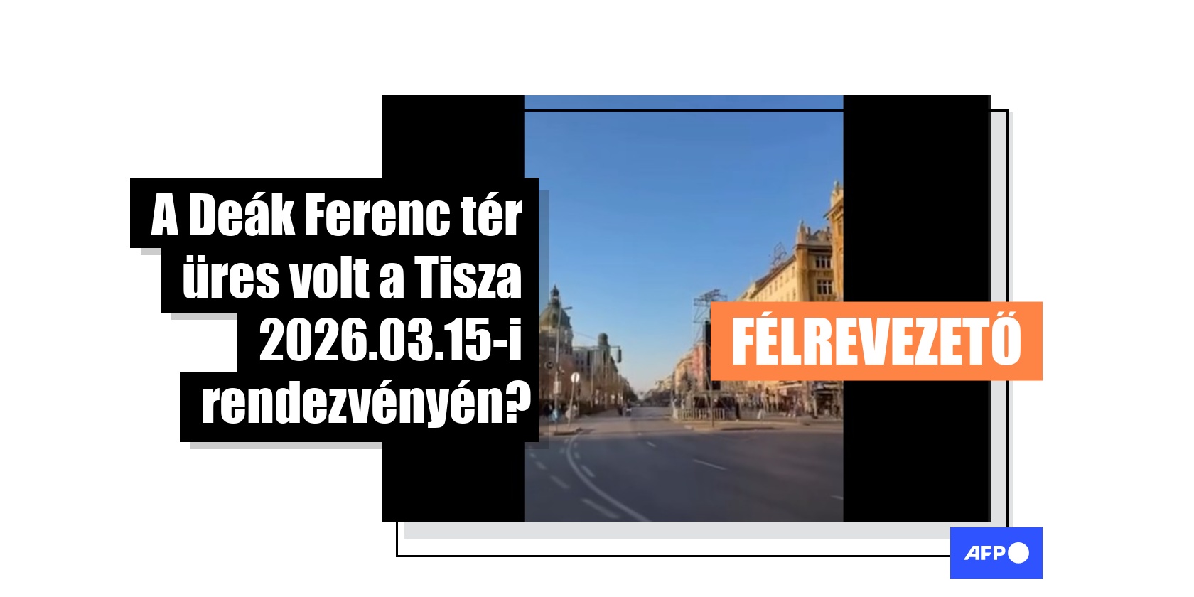 Hatalmas tömegek vettek részt a magyar miniszterelnök, Orbán Viktor és a fő kihívója, Magyar Péter által szervezett rivális felvonulásokon Budapesten 2026. március 15-én, alig négy héttel a szorosnak ígérkező választások előtt. Több százezer felhasználó nézett már meg egy a közösségi médiában terjedő videót, amelyen a szinte teljesen üres Deák Ferenc teret látni. A felvételhez azt a megjegyzést fűzték, hogy a videó bizonyítja: a Tisza párt rendezvénye elmaradt a várakozásoktól. Az AFP saját fotói és helyszíni beszámolója azonban alátámasztják a tényt, hogy a tér csupán gyülekezőhely volt, és a tömeg később a Hősök terére vonult. Ezt igazolja a rendezvény hivatalos útvonala, valamint a szervezők által megosztott fotók, videók és légi felvételek is.