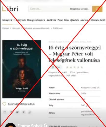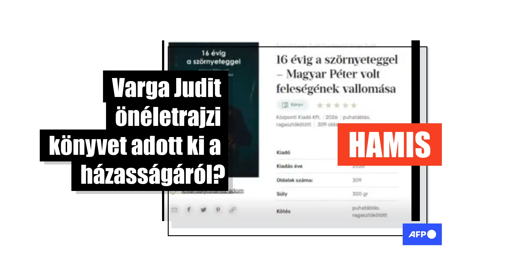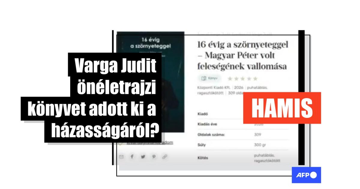 Ahogy közeleg a 2026. április 12-i országgyűlési választás, egyre több hamis és megtévesztő állítás jelenik meg a jelöltekről, különösen Orbán Viktor miniszterelnök legfőbb kihívójáról, Magyar Péterről. Ebben az összefüggésben egy weboldal azt állította, hogy az egykori igazságügyi miniszter, Varga Judit önéletrajzi könyvet adott ki, amelyben különböző állításokat fogalmazott meg volt férjéről, Magyar Péterről. Varga azonban semmilyen önéletrajzi könyvet nem jelentetett meg – ezt maga a volt igazságügyi miniszter is megerősítette az AFP-nek. Emellett az interneten sincs semmilyen nyoma egy ilyen könyvnek. Az állításokat közlő weboldal megjelenésében egy hírportált utánoz, ugyanakkor úgy tűnik, hogy a cikkei nagy részét rövid idő alatt töltötték fel, amelyek valódi hírportálokról átvett cikkek összefoglalóinak tűnnek.