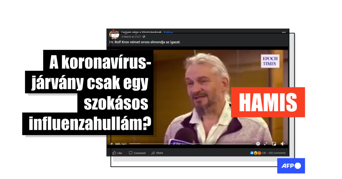 Több mint harmincezren osztották meg Facebookon március 5-e óta azt a német nyelven készült magyarul feliratozott videóinterjút, amelyet egy Rolf Kron nevű német orvossal készített az Epoch Times. A videót több nagy elérésű oldal is megosztotta, megosztották például itt és itt.