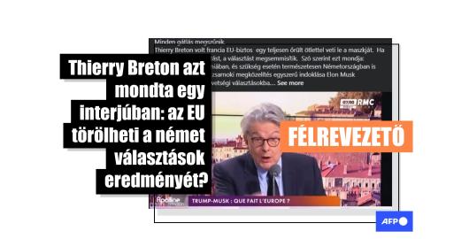 Kép Európai Unió Megjelent: 2025.02.03 Az EU nem tud választásokat érvényteleníteni, Thierry Breton ex-biztos megjegyzéseit félreértelmezték